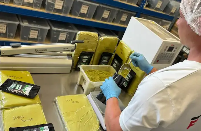 Zpracování a balení zeleného kratomu řešíme v provozu s nastavenými hygienickými a provozními postupy podle systému HACCP. Tyto postupy se vztahují k manipulaci, skladování a balení suroviny v rámci výrobního procesu.